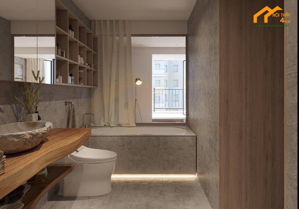 Nhà vệ sinh được thiết kế với sự tập trung vào sự sạch sẽ, tiện nghi và thẩm mỹ. Nội thất 4 Mùa chọn kỹ các vật liệu và thiết kế để tạo ra không gian nhà vệ sinh thoải mái và hiện đại.