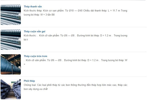 Hiện nay, thép Việt Ý được chia thành 4 sản phẩm phổ biến nhất đang cung ứng ra thị trường sắt thép ở Việt Nam.
