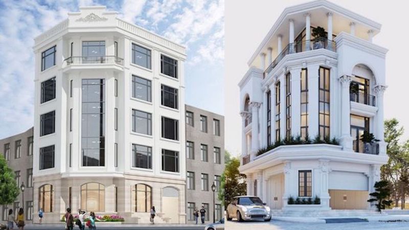 2. Công trình nhà lô góc phố 2 mặt tiền 5 tầng kiến trúc tân cổ điển
