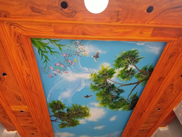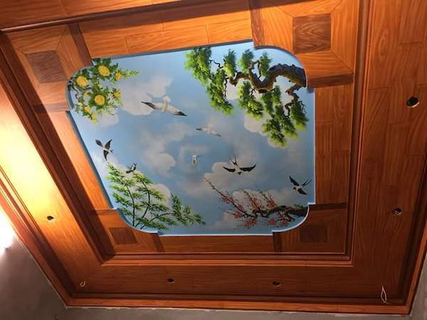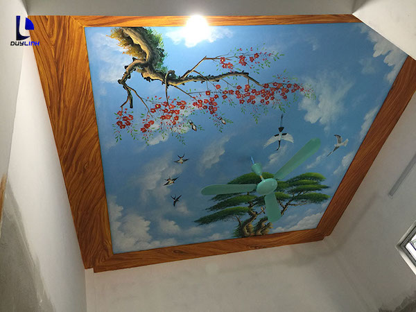 - Tiếp theo đó là sơn qua một lớp nền trơn để làm sơn lót cho trần, làm tăng độ bám cũng như tăng tính thẩm mỹ cho tranh.