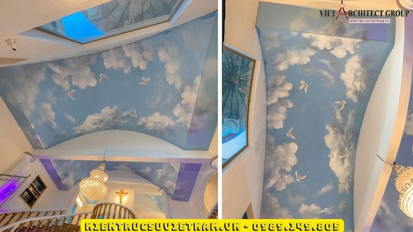 Hiện nay xu hướng Vẽ trần mây độc lạ, thu hút, tạo điểm nhấn ấn tượng cho không gian, được nhiều người quan tâm. Các khu vực không gian phòng khách, sảnh, hành lang được trang trí vẽ trần 3D, tạo điểm nhấn và ấn tượng mạnh mẽ.
