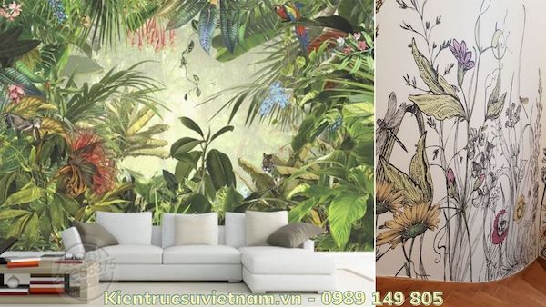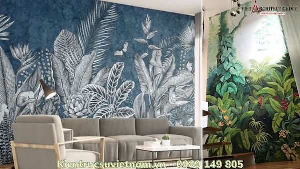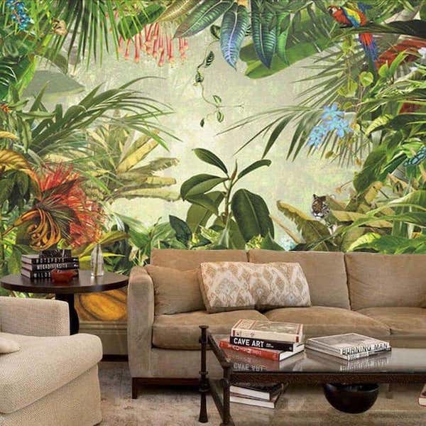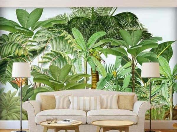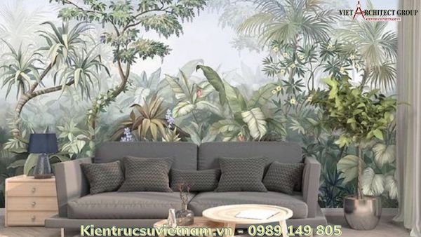 - Chủ đề rừng rậm nhiệt đới: Những họa tiết về cây cối, muông thú ở trong tranh rừng nhiệt đới sẽ khiến cho bạn cảm thấy một cảm giác gần gũi hòa mình với thiên nhiên. Bên cạnh đó, sắc xanh tươi mát của cây cỏ ở trong rừng cũng sẽ làm cho không gian phòng khách thêm sinh động hơn, thoát khỏi những sự ngột ngạt của những ngôi nhà ở tại các thành phố đông đúc.
