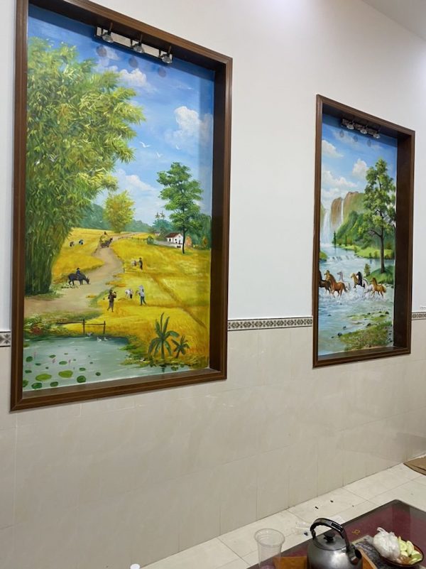 - Chủ đề phong cảnh thôn quê: Những bức vẽ với khung cảnh thân thuộc, gần gũi như là làng xóm, cánh đồng lúa vàng sẽ đem lại cho không gian của bạn một sự bình yên, giản dị.