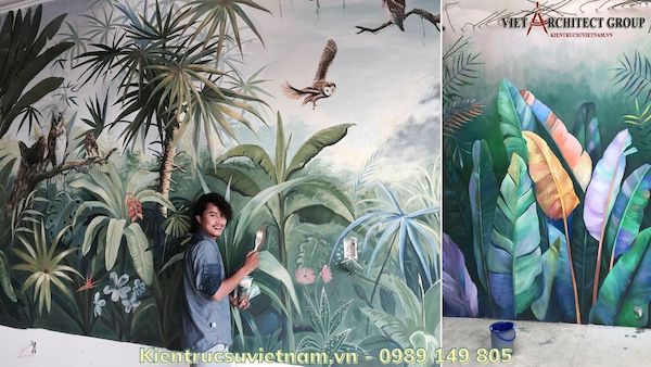 – Về chất liệu vẽ, nếu trong nhà thì sử dụng sơn dầu, acrylic, ve tường, ngoài trời có thể sơn Nikko, Toa… tùy vào từng không gian để sử dụng các loại chất liệu vẽ khác nhau nhằm giữ bức tranh bền màu.