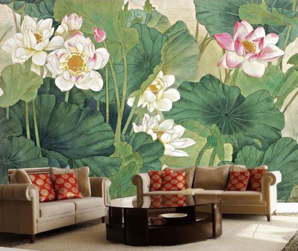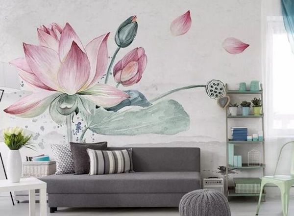 - Chủ đề về hoa: Bạn có thể chọn các loài hoa có nhiều ý nghĩa và biểu tượng như hoa sen, hoa hướng dương,… để làm chủ đề chủ đạo cho bức vẽ tường phòng khách. Bên cạnh đó bạn cũng có thể chọn những loài hoa hợp mệnh để giúp thu hút tài lộc, gia đình êm ấm.